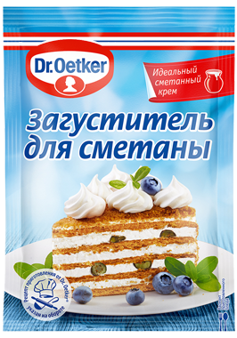 Загуститель для сметаны Dr.Oetker предназначен для получения крема идеальной консистенции. В составе загустителя содержится небольшое количество сахарной пудры, поэтому он обладает сладковатым вкусом. Не имеет запаха. С применением одной упаковки Dr.Oetker, всего за пару минут можно сделать из 0,5л сметаны воздушный и плотный мусс. Рекомендуется использовать для кисломолочных продуктов различной жирности.